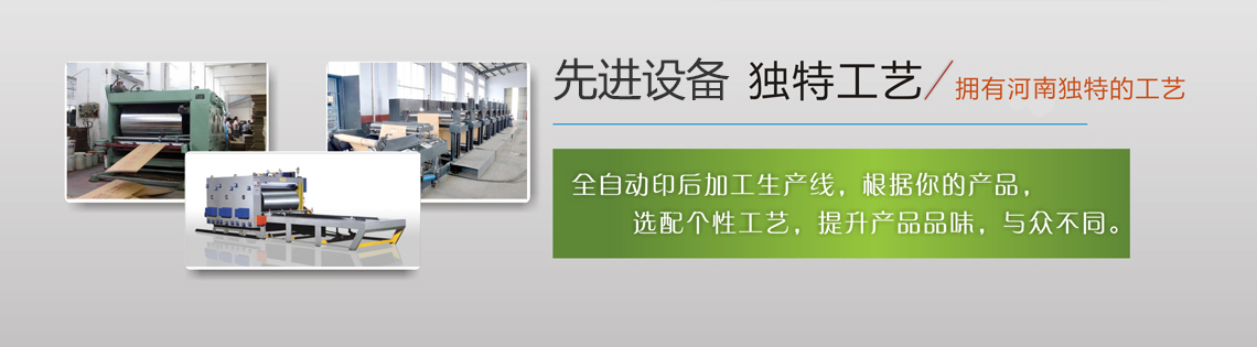 鄭州紙上印包裝制品有限公司擁有一流的設備,先進的管理經驗,雄厚的技術力量和優秀的技術人才。目前公司擁有海德堡1020四色印刷機、全自動精品盒流水線、全自動卡紙瓦紙自動對裱機,半自動平壓平模切機、以及相配套的自動釘箱機、自動粘盒機、分切機、壓紋機、UV燙金機等各種包裝加工印刷設備30多臺套,可對各類紙品包裝盒印刷加工定做。